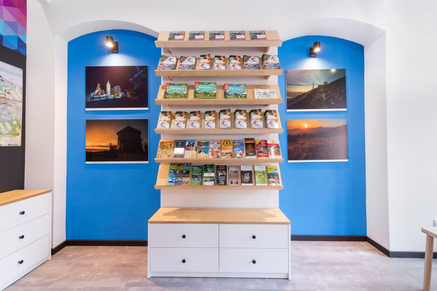 Dla turystów oferujemy bezpłatne broszury i foldery, a także wiele gadżetów, map i publikacji, które można tu zakupić.